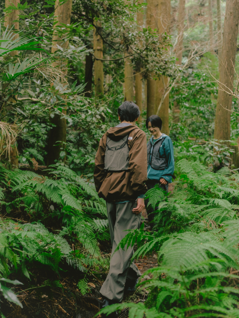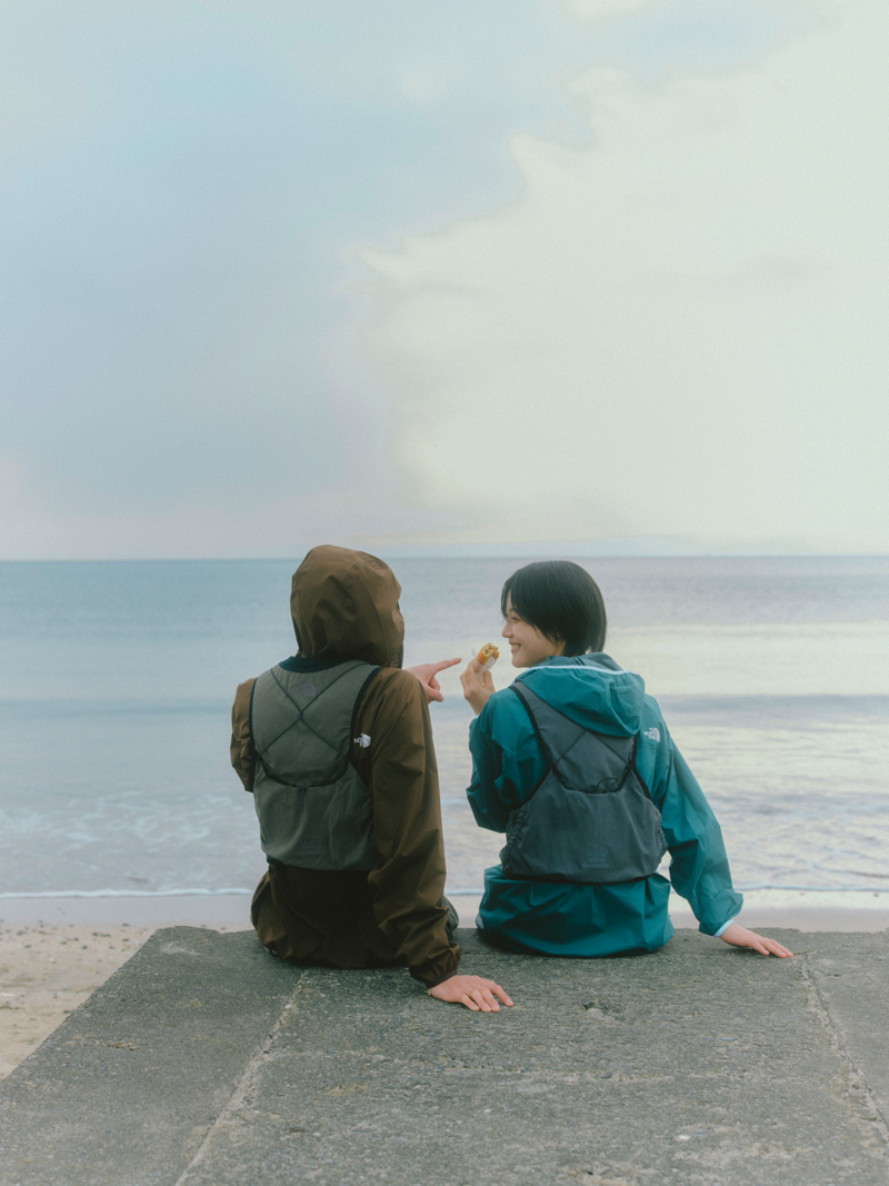 ふたりの足取りを支えたのは、ザ・ノース・フェイスの「GAR」。トレイルランニングの機能性を都市のスタイルに落とし込んだ新作コレクションだ。しなやかで着心地が快適なライトレインジャケットは、マットな質感が街の風景にもすんなりなじむ。ほかにも、コットン100%の風合いながら高い吸汗速乾性を備えたTシャツなど、「GAR」には街と山をシームレスにつなぐ心強いアイテムが揃う。