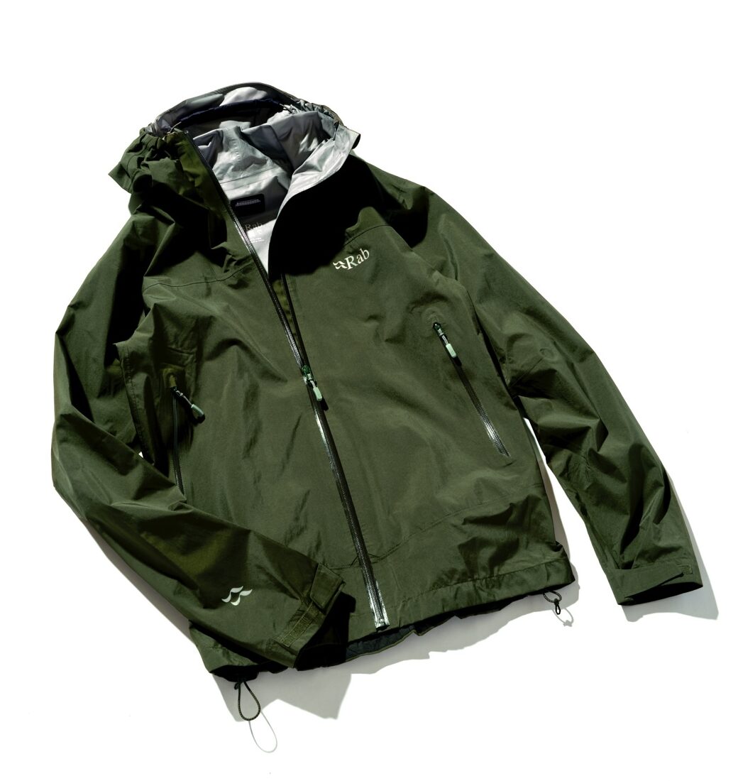 「普段ハイテク素材はあまり着ないんです。でも4・5年前に購入したラブ(Rab)のこのレインジャケットは、フィールドにも必ず持って行くし、街でも使う。好きな理由を挙げるなら、色味かな。ただ、フィッシングベストの上から羽織るには少しタイトで。自分が心から納得できるレインウエアなんかも、今後シャレーで作っていけたらと考えています」