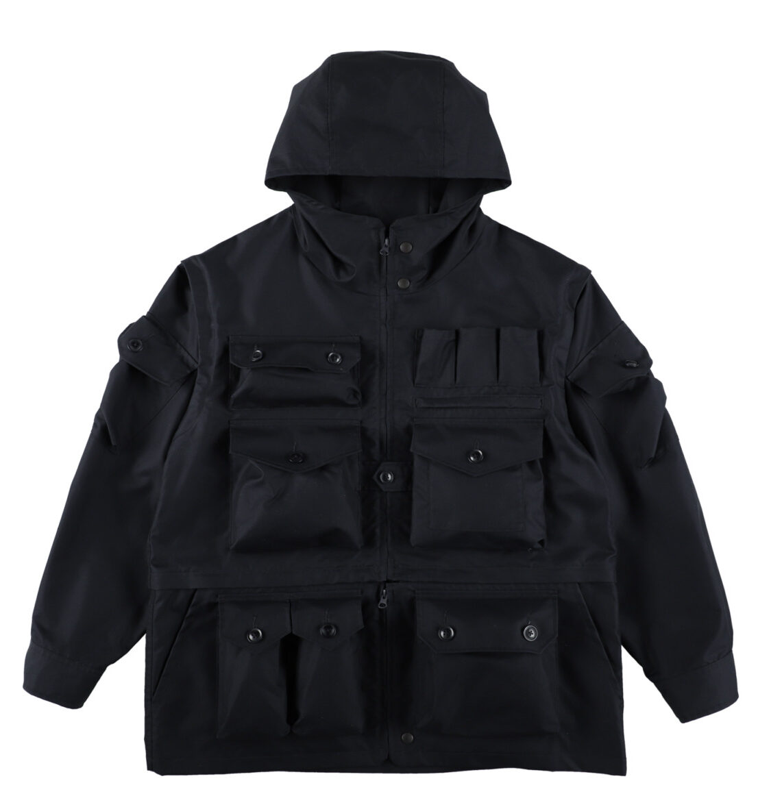今季を象徴する一着。フォトグラファーの撮影現場で求められる実用性を都市の装いへと落とし込んだジャケットで、前面に配置された多種多様なポケットが最大の特徴。スマートフォンや鍵、小型ガジェット類をバッグなしで機能的に収納できる。機能がそのままデザインの骨格を成しており、街中でも唯一無二の存在感を放つ。